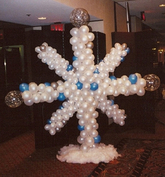 We gave an ordinary building a major holiday facelift with our beautiful balloon snowflakes in a mix of pure white and gleaming blue colors. Decorations like these will transform the atmosphere from the everyday to the extraordinary in fantastic winter fashion.